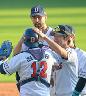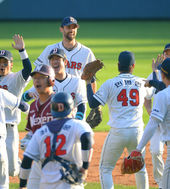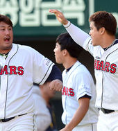 2013.10.12 17: 02최재훈,'니퍼트! 나 오늘 잘했지?'