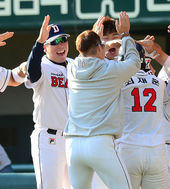 2013.10.12 16: 18'투런포' 최재훈,'역전 해냈어요 코치님!'