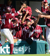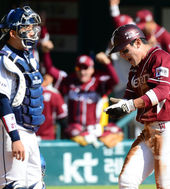 2013.10.12 14: 12선취득점에 환호하는 서건창