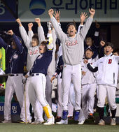2013.10.14 22: 33환호하는 두산,'승리의 여신은 우리에게로 왔어!'
