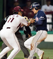 2013.10.14 22: 41민병헌,'태그 좀 살살해줘'