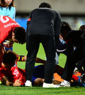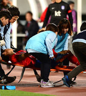 2013.10.15 23: 11들것에 실려 나가며 괴로워하는 구자철