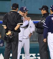2013.10.16 20: 33정수빈 번트 스윙 관련 항의하는 두산 김진욱 감독