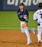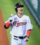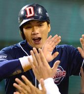 2013.10.16 19: 30선취 득점 올리고 환하게 미소짓는 이종욱