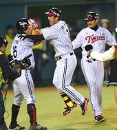 2013.10.16 18: 44이병규 동점 홈런에 환호하는 박용택과 이진영