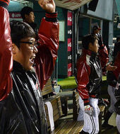 2013.10.17 22: 09적시타에 환호하는 LG 더그아웃