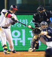 2013.10.17 19: 16이병규,'교체된 핸킨스 상대로 좌전 안타'