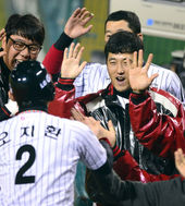 2013.10.17 18: 55환호하는 박용택, '타격감 조율 끝!'
