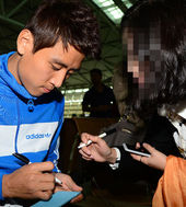2013.10.17 13: 17지동원,'여성팬들에게 둘러 쌓여 사인중~'