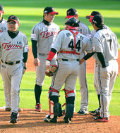 2013.10.19 16: 09마운드 오른 김기태 감독, '하나만 잡자'