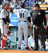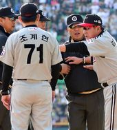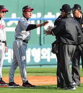 2013.10.19 15: 27주루방해 판정 관련 어필하는 김기태 감독