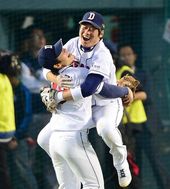 2013.10.19 18: 16민병헌-이원석,'너무 짜릿한 승리야!'