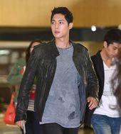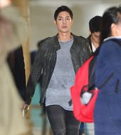 2013.10.19 09: 16김현중, '가죽재킷으로 멋낸 공항패션'
