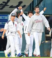 2013.10.20 17: 31만세 외치는 김현수-최준석, '가자 한국시리즈로!'