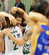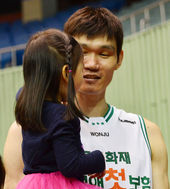 2013.10.22 21: 14딸과 기쁨을 나누는 김주성,'아빠 역전슛 봤어?'