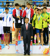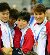 2013.10.22 17: 58박태환,'동료들과 금메달 미소 활짝'