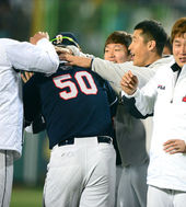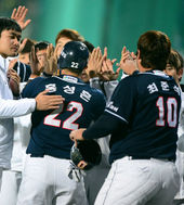 2013.10.24 20: 05김현수-최재훈, '훈훈한 홈런 포옹'