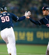 2013.10.24 20: 05홍성흔-최준석,'득점 후 신나는 하이파이브'