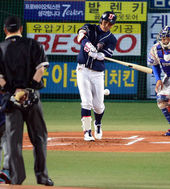 2013.10.24 18: 09이종욱,'김자인 시구에 헛스윙'