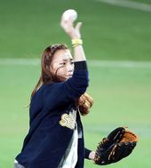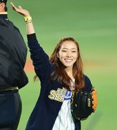 2013.10.24 18: 14한국시리즈 시구 나선 김자인, '마운드에서 던질게요~'