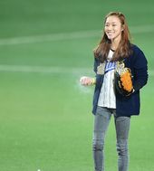 2013.10.24 18: 11'한국시리즈 시구' 나선 김자인, '상큼발랄 미소'