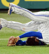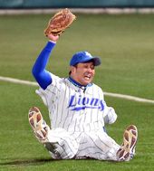 2013.10.25 19: 40임재철의 빗맞은 타구 잡으며 엉덩방아 찧는 채태인