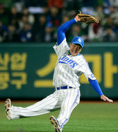 2013.10.25 19: 42채태인,'뒤로 굴러도 공은 글러브에'