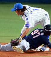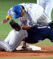 2013.10.25 18: 36오재원,'박석민 무릎에 쿵!'