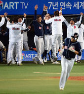 2013.10.25 23: 10환호하는 두산 더그아웃,'홈런 친 선수는 들어오지도 않았는데!'