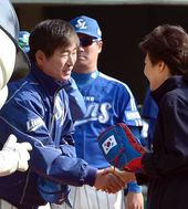 2013.10.27 14: 11류중일 감독과 인사 나누는 박근혜 대통령