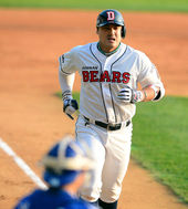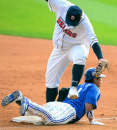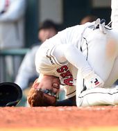 2013.10.27 16: 45득점 올리고 햄스트링으로 괴로워 하는 오재원