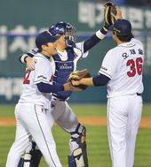 2013.10.28 21: 464차전 승리 지켜낸 윤명준,'땅볼로 경기 끝!'