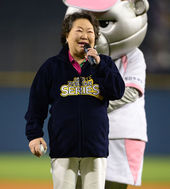 2013.10.28 18: 13여성 최초 장내 아나운서 모연희씨, 시구에 앞서 선수 소개
