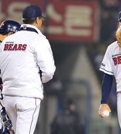 2013.10.29 21: 52마운드 내려가는 정재훈,'고비를 못 넘겼어'