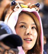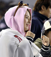 2013.10.29 21: 41채연,'두산곰 머리띠 쓰고'