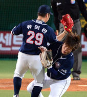 2013.11.01 19: 57이원석-유희관,'조심하자'