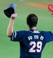 2013.11.01 19: 41유희관, '역투에 모자까지 벗겨지며'