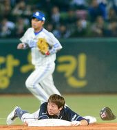 2013.11.01 18: 57도루 실패 정수빈, '일어나기 싫다'