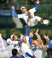 2013.11.01 22: 48헹가레 받는 김태한 코치,'세상을 다 가진 기분'
