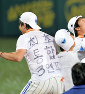 2013.11.01 22: 52최형우, '장원삼 볼에 뽀뽀'