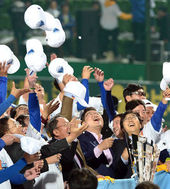 2013.11.01 22: 50우승 모자 던지는 삼성, '하늘을 나는 기분!'