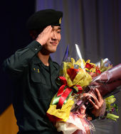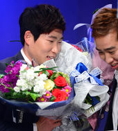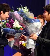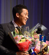 2013.11.04 14: 34'신인왕' 이재학,'희관이 형, 꽃다발 고마워요!'