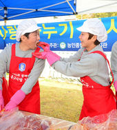 2013.11.05 14: 12정몽규 회장,'나래, 김장 김치 맛있지?'
