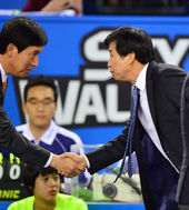 2013.11.07 19: 52신영철 감독-김호철 감독,'멋진 경기 해봅시다'