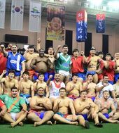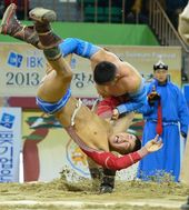 2013.11.14 16: 11몽골 전통 경기 '부흐' 선보이는 선수들