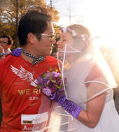 2013.11.17 17: 47웨딩드레스 입고 마라톤 완주한 참가자,'예비신랑과 기쁨키스'