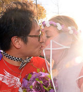 2013.11.17 17: 45웨딩드레스 입고 마라톤 완주한 참가자,'기쁨의 키스 나누며'