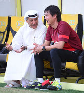 2013.11.19 00: 47홍명보 감독, 알 와슬 기술팀장과 웃음꽃