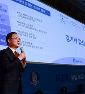 2013.11.22 16: 535대 추진 목표 발표하는 이용수 KFA 미래전략기획 단장
