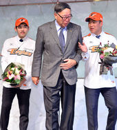 2013.11.27 15: 19코끼리 감독 막는 정근우,'감독님! 사진은 찍고 가셔야죠'